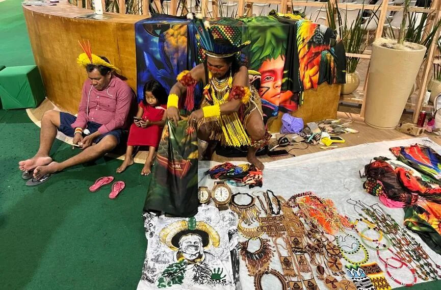COP30绿区对公众开放,经常举办活动,原住民们在这里摆摊售卖工艺品